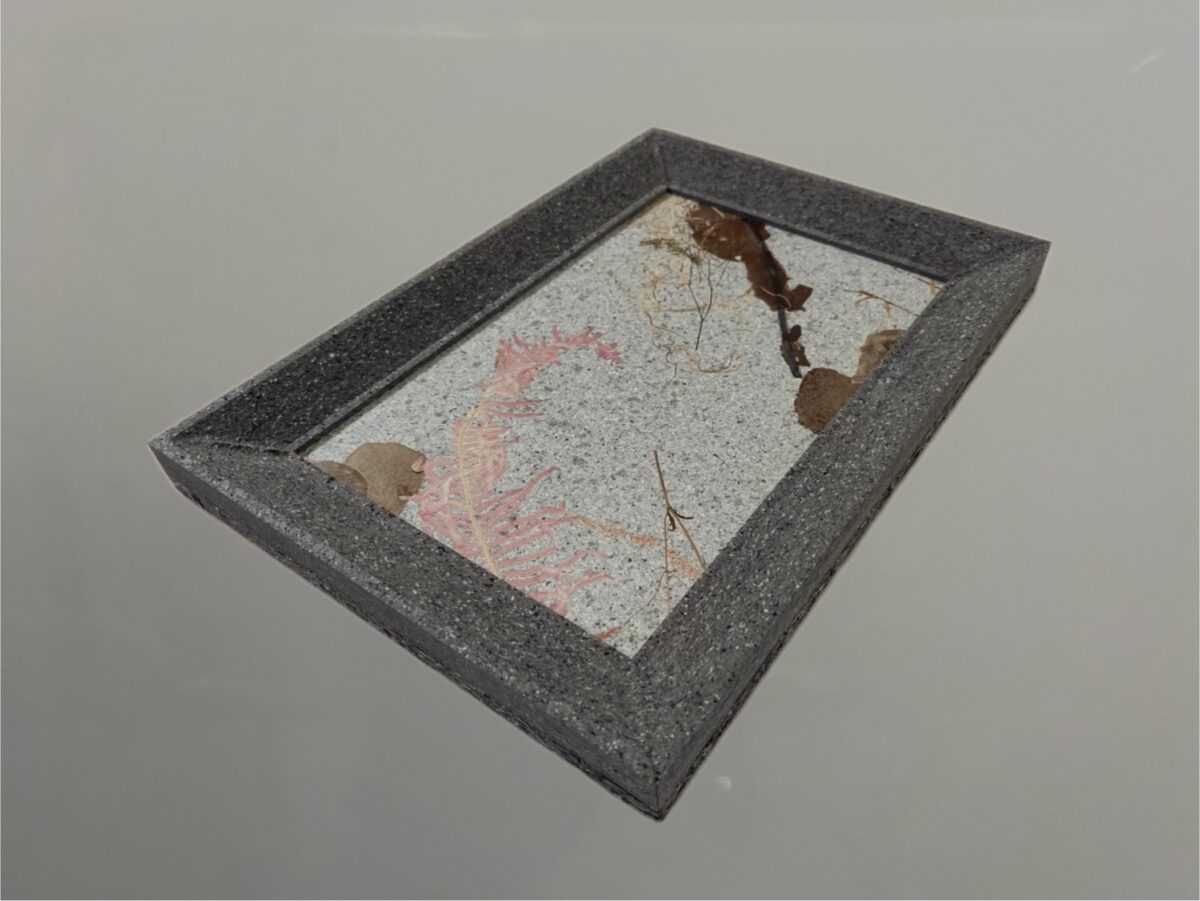 布だけではなく合成皮革など廃棄衣料品に含まれるさまざまな繊維を美しくアップサイクルすることができるサスティナブルな循環型・環境配慮型素材の繊維リサイクルボード「PANECO®」を加工しています。