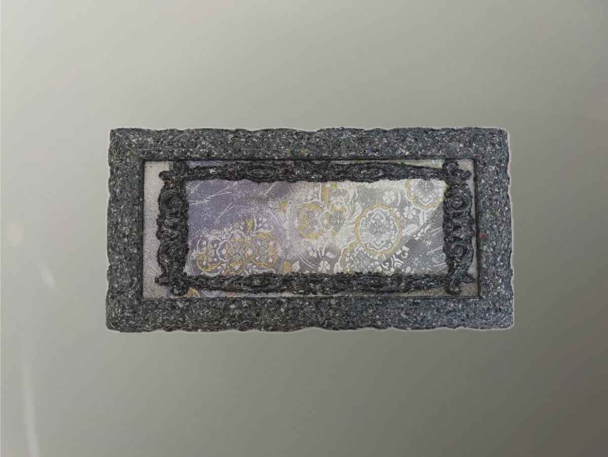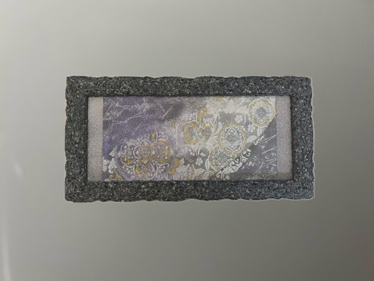 布だけではなく合成皮革など廃棄衣料品に含まれるさまざまな繊維を美しくアップサイクルすることができるサスティナブルな循環型・環境配慮型素材の繊維リサイクルボード「PANECO®」を加工しています。